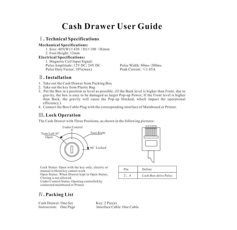 HAVSOL GS-405A Cash Drawer Specifications
